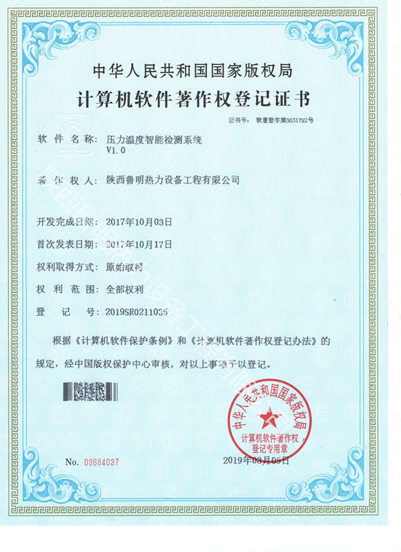 换热机组智能控制系统软件著作权登记证书