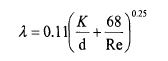 式中K—管内表面的当量绝对粗糙度,m(闭式空调冷冻水系统K=0.0002m);由公式一可以看出,摩擦阻力系数