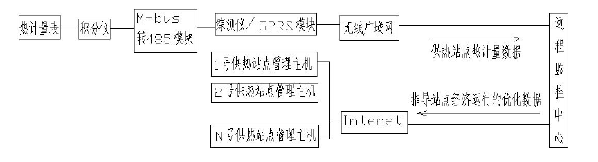 张少军[45]在《城市大型网络化供热监控控制系统的研究》一文中,与我们的设计改造思路不谋而合,他对城市供热站点热计量系统进行了优化,在原有监控系统的基础上加入了控制思路,使得热计量监控系统不仅能实时监测热量的变化,还可以根据热量的变化适时作出调节和自动控制,避免了供热系统不必要的能源浪费,图4.10是优化后的热计量监控系统的闭环结构图。