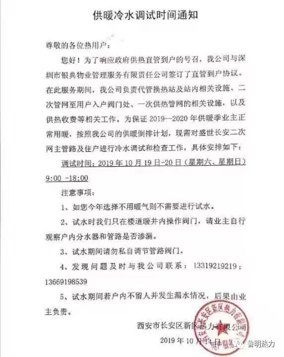 提前一周张贴供暖调水通知单