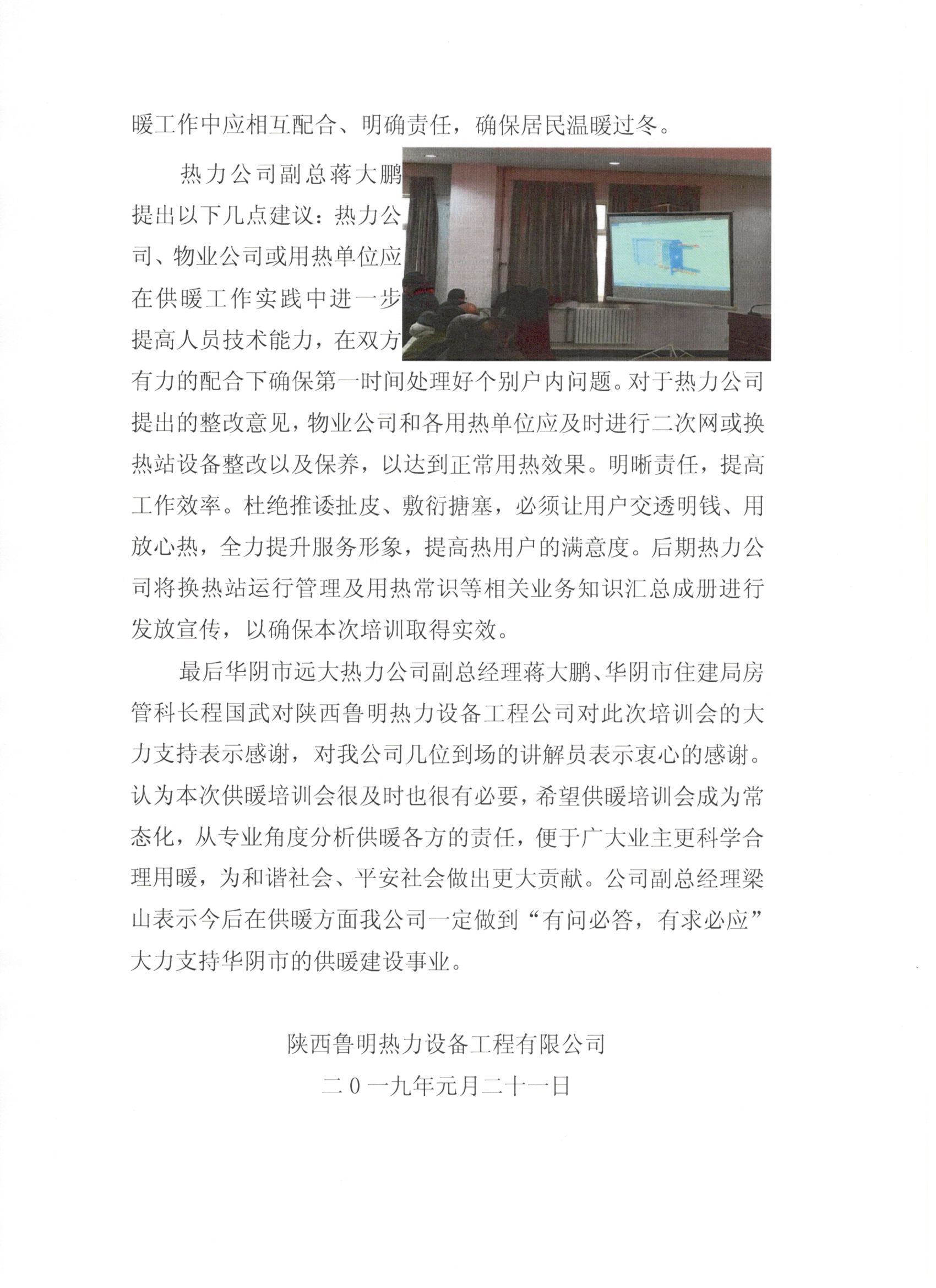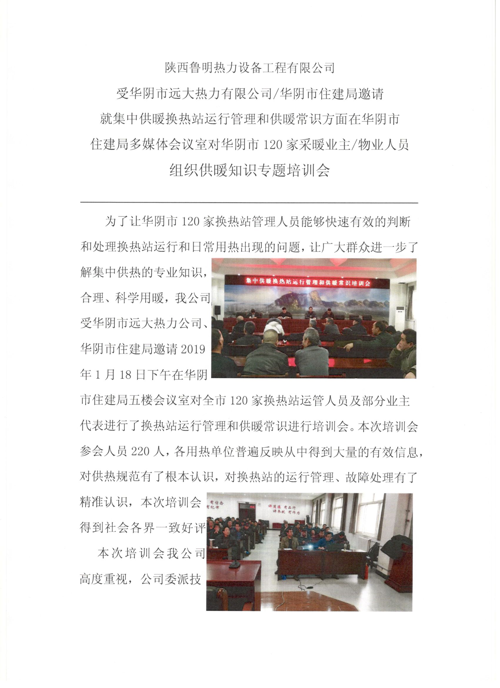 受邀华阴市远大热力有限公司组织供暖知识专题培训会